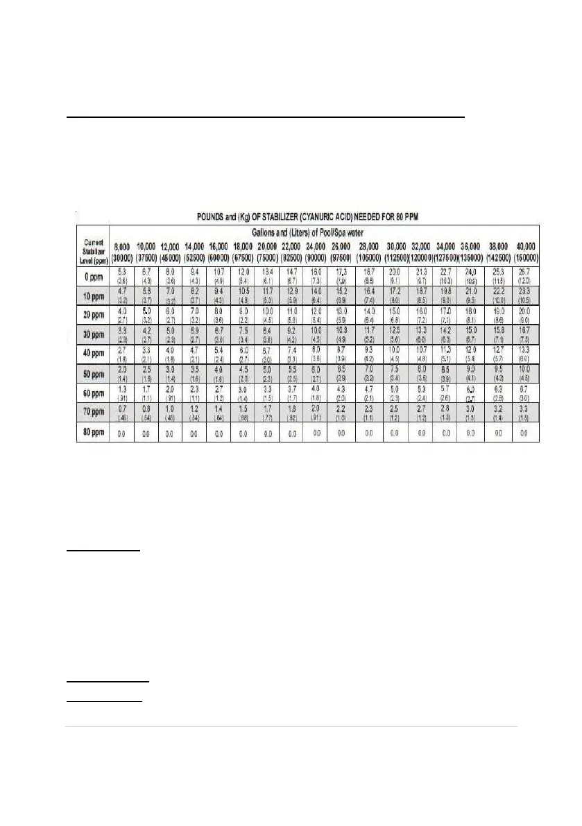 POUNDS and (Kg) OF STABILIZER (CYANURIC ACID) NEEDED FOR 80 PPM