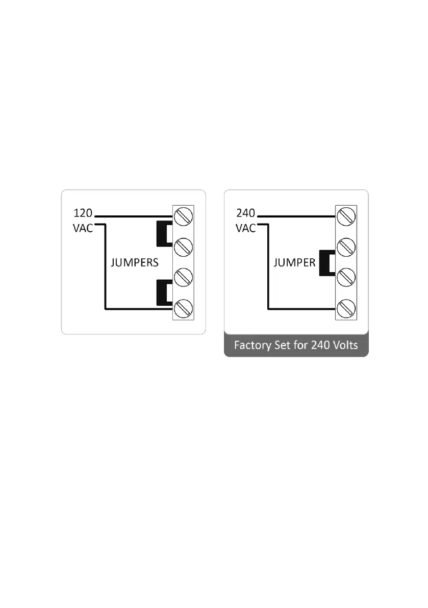 The is shipped from the factory with a 240 VAC configuration. If 120VAC is needed, move