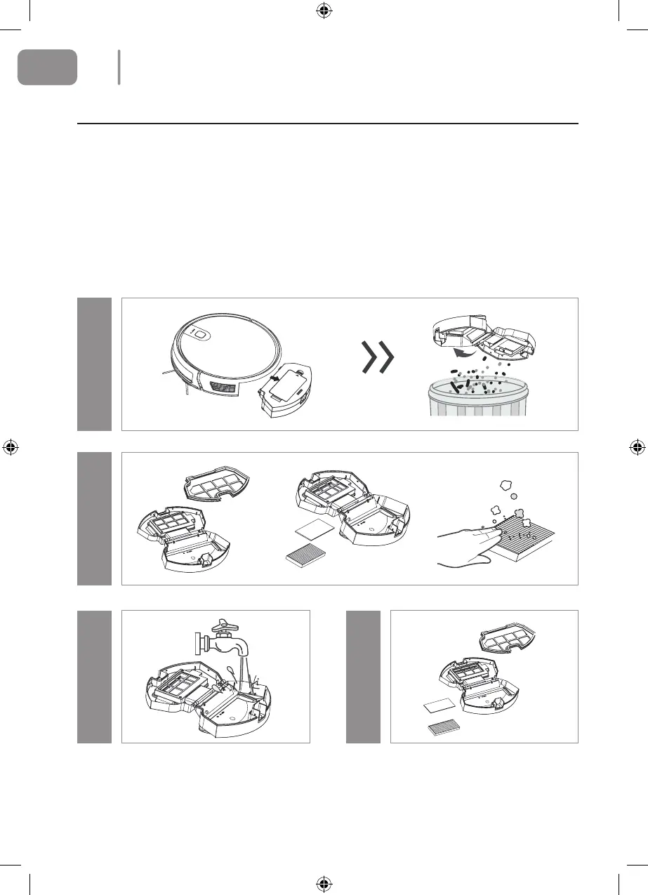 2. Rimuovere ii ltro antipolvere. L’HEPA non e raccomandato per ii lavaggio. 3. Picchiettare e