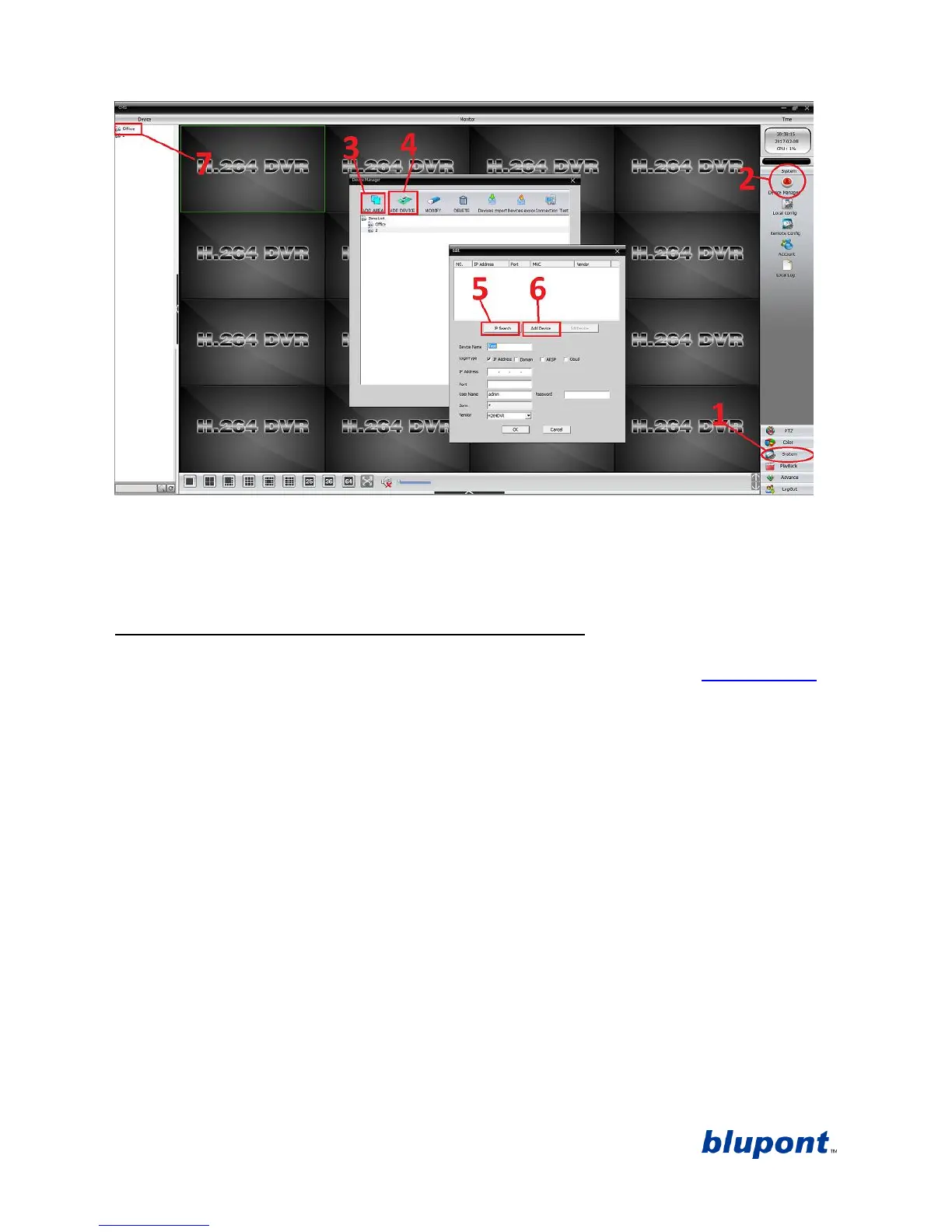 To access and configure the DVR settings from the CMS software click ‘System’ in the bottom right then