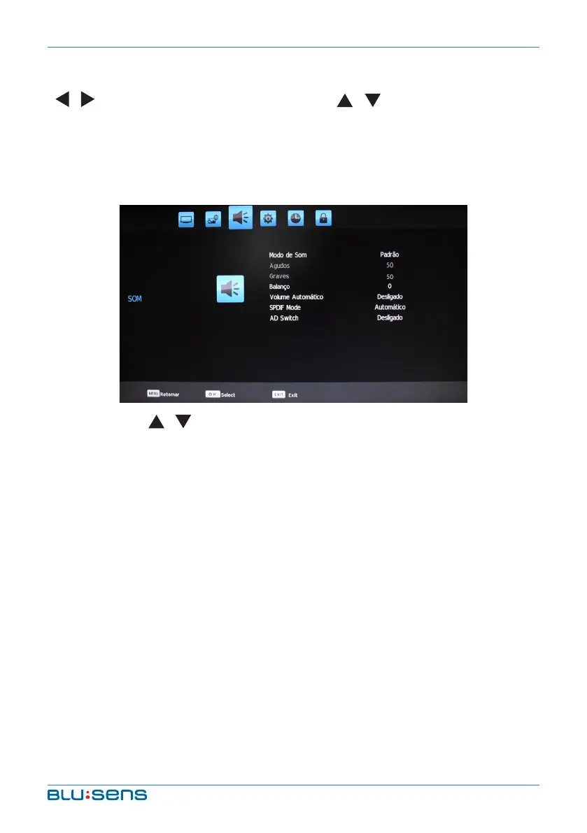 Após seleccionar o Modo Som premir a tecla OK para entrar no submenu.