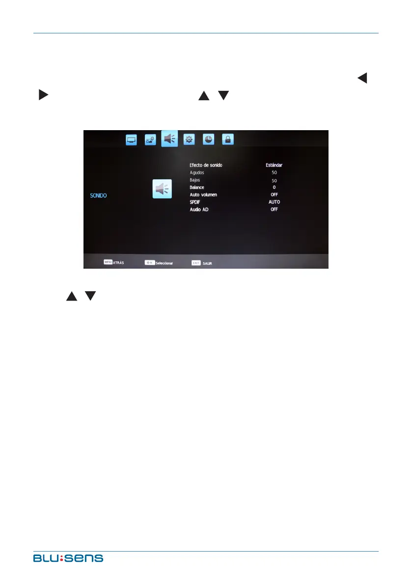 ajustar o seleccionar. Pulse OK para entrar en los submenús del modo Sonido.