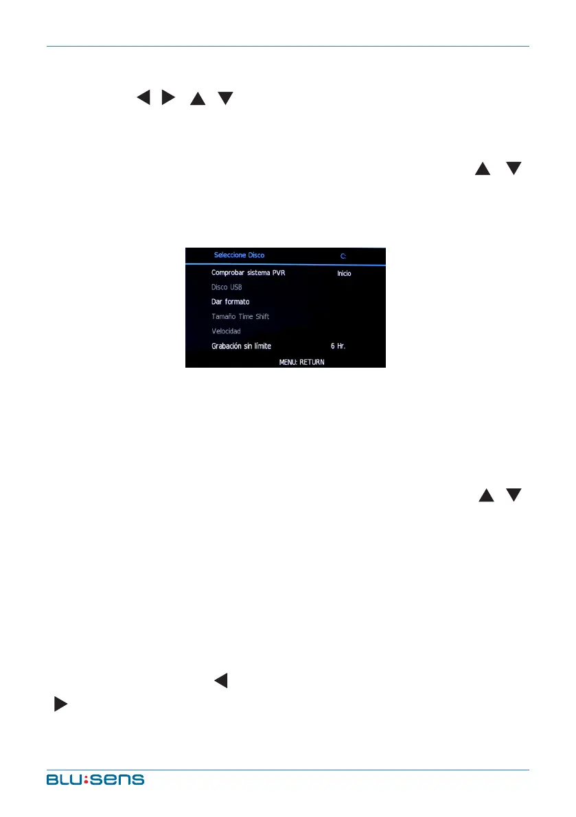 Sistema PVR: Pulse OK para entrar en el submenú. Pulse /