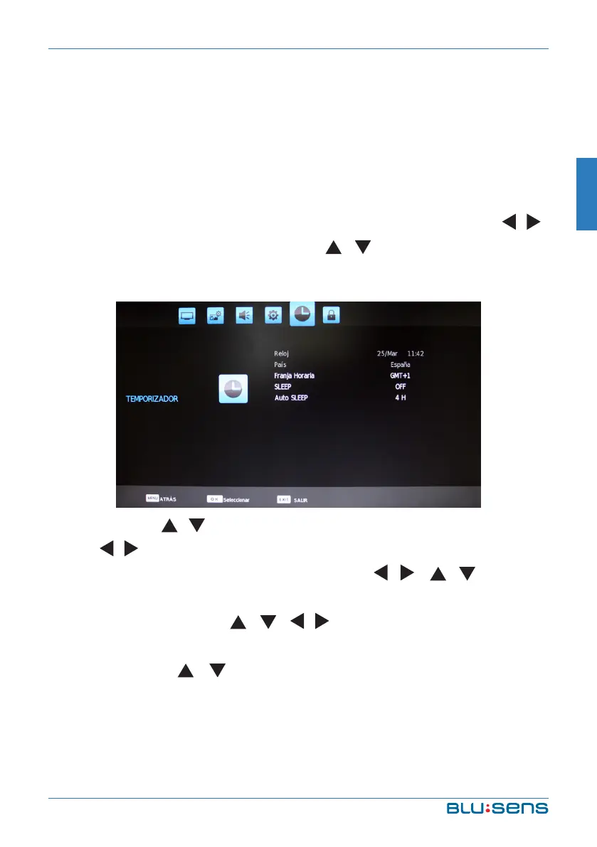 Franja Horaria: Pulse / / / para seleccionar la zona en la