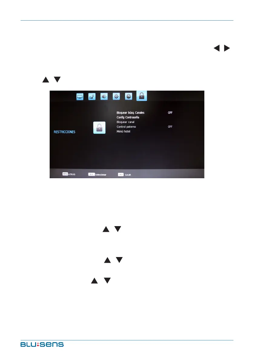Bloquear búsqueda de canales: Pulse OK para seleccionar “On/Off”