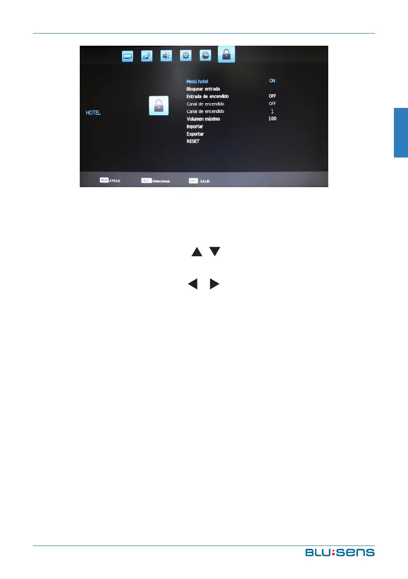 Exportar: Exportar ajustes de modo hotel a un dispositivo externo.