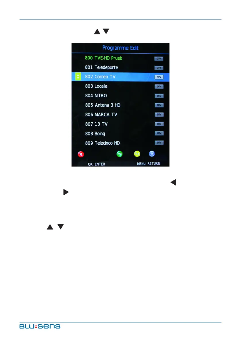 Programme Edit: Press / key to select the channel you´d like to edit.