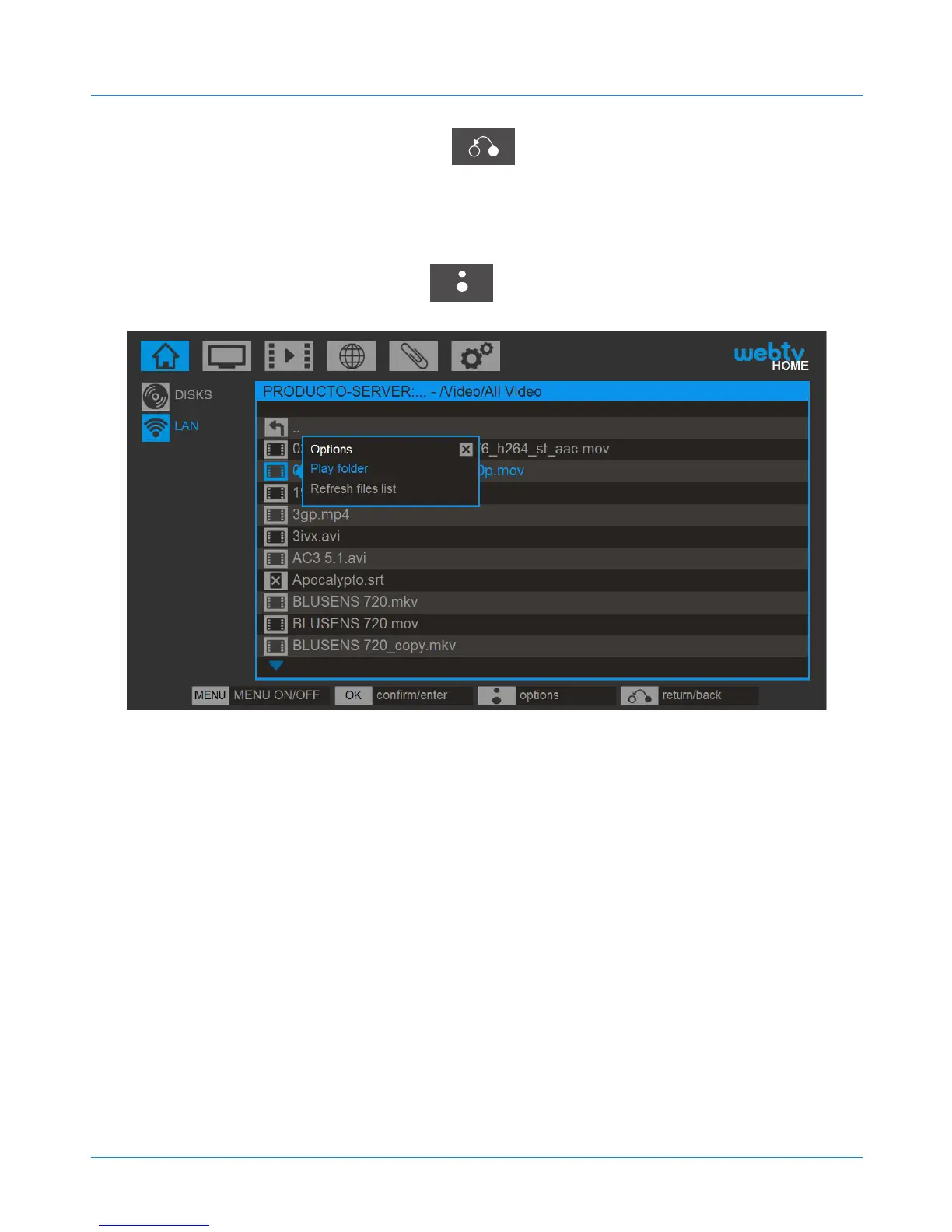 Play folder: Selects the whole folder and start a