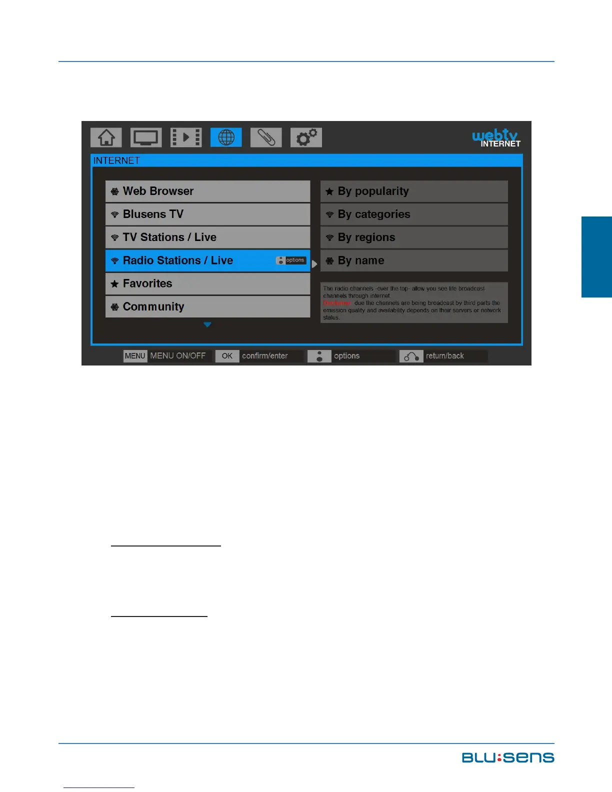 “Radio channels / Live” option. The channels will be