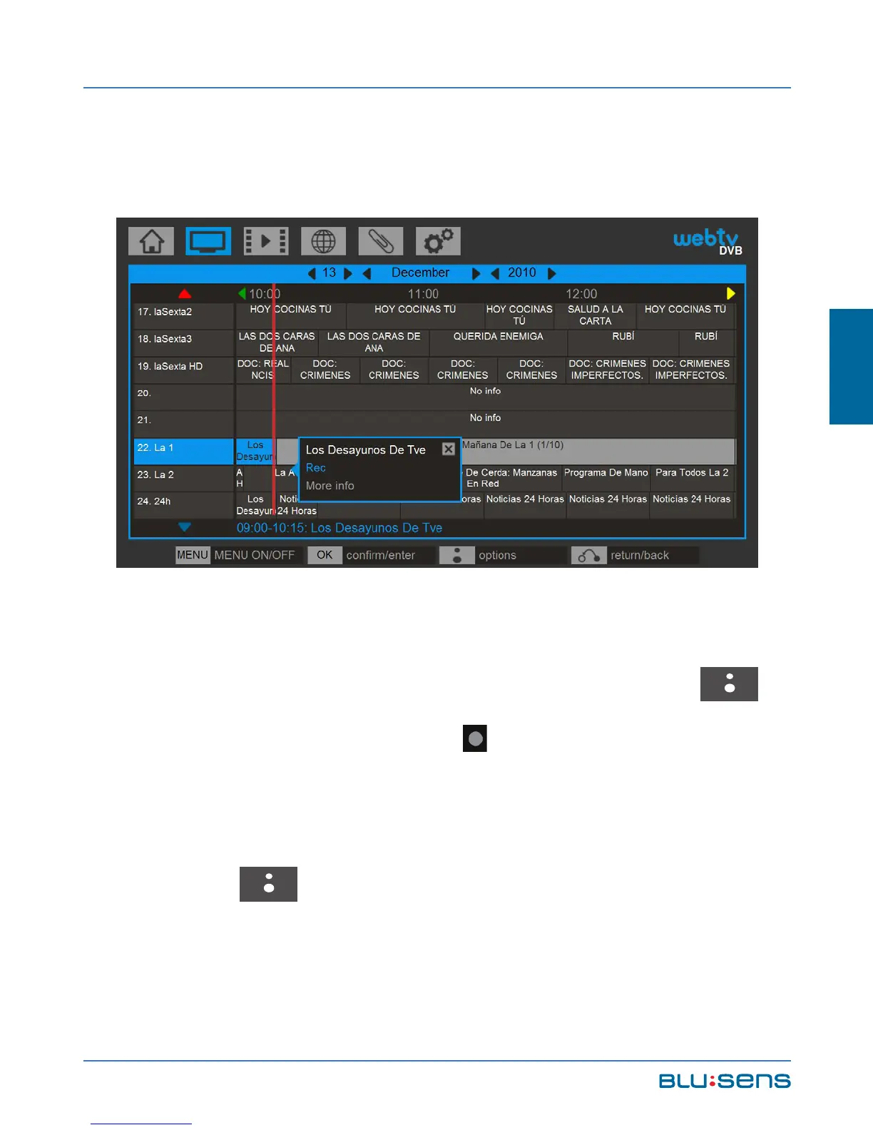 To record a particular program go to DVB / GUIDE