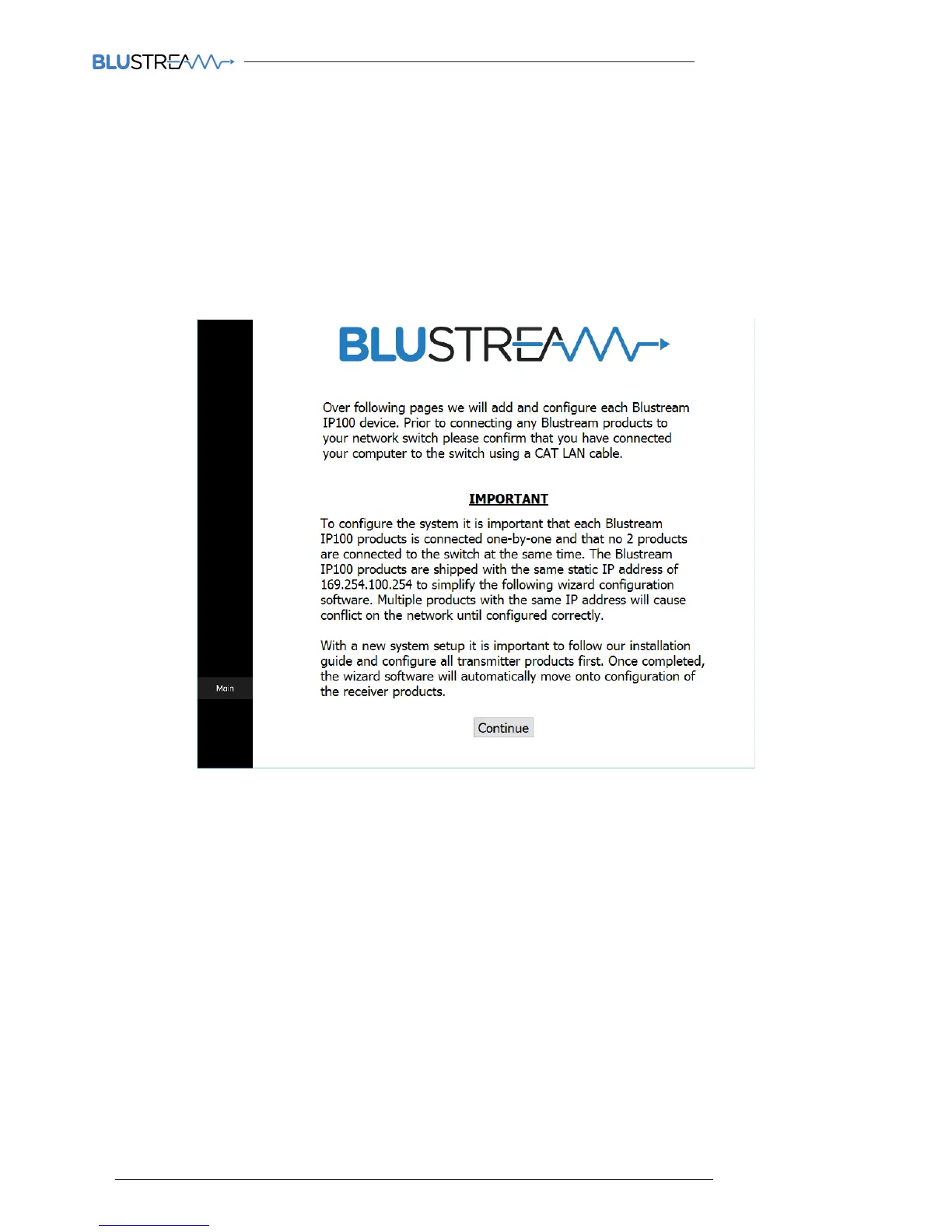 Each Blustream Multicast products is shipped with the default IP address of 169.254.100.254
