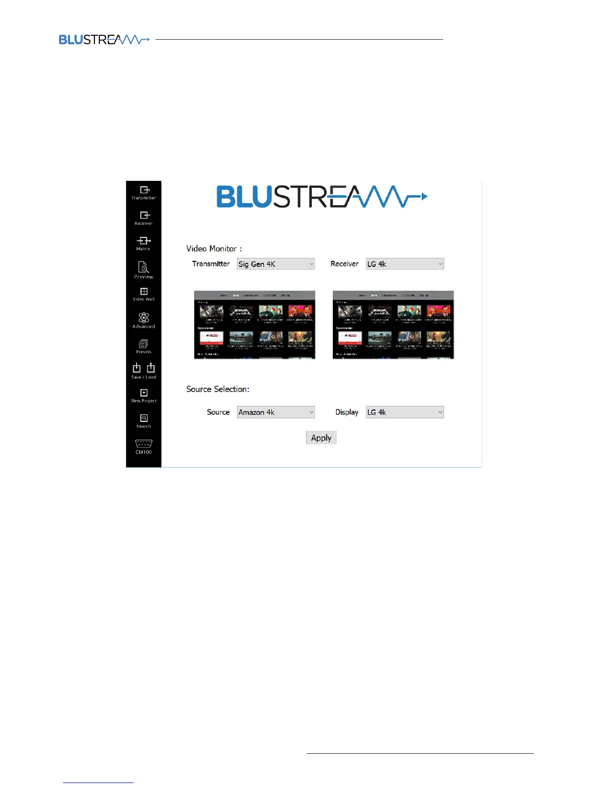 To view the video output to a display from a Receiver simply select the Receiver from the Receiver drop-down box.