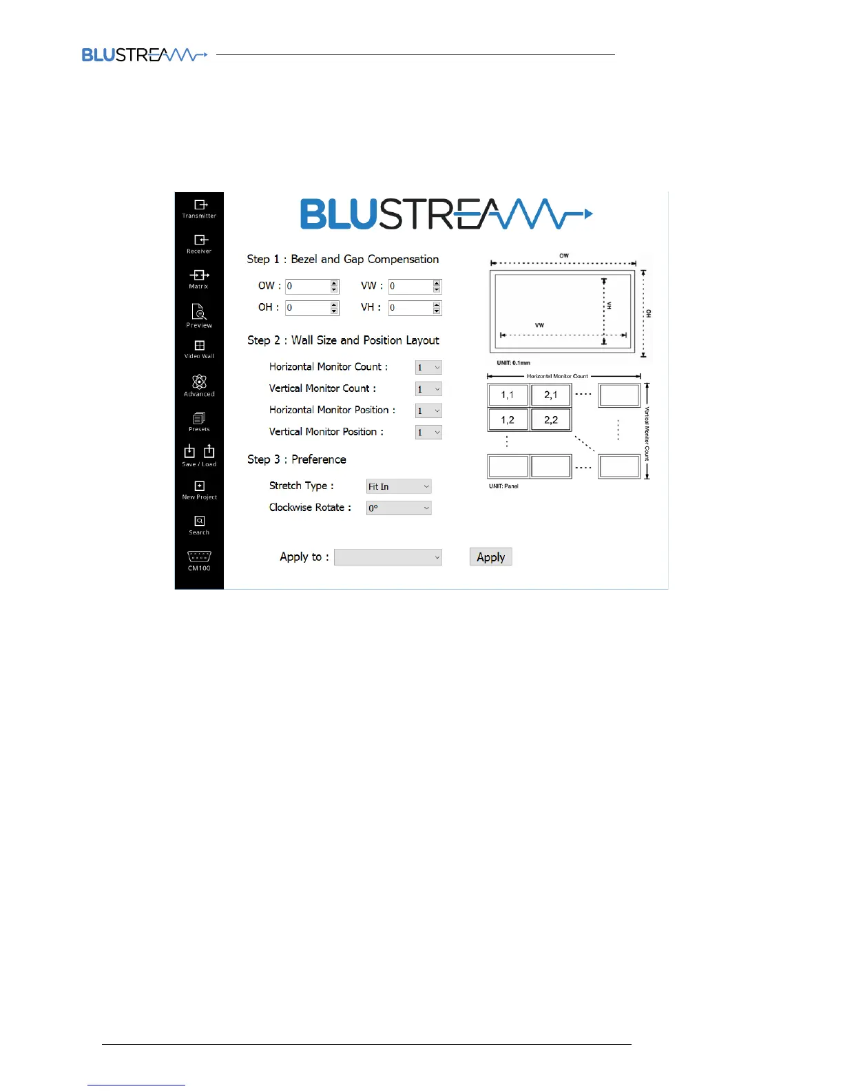5. ‘Apply To’ - once you have made changes to video wall configuration you can select the Receiver that you wish to