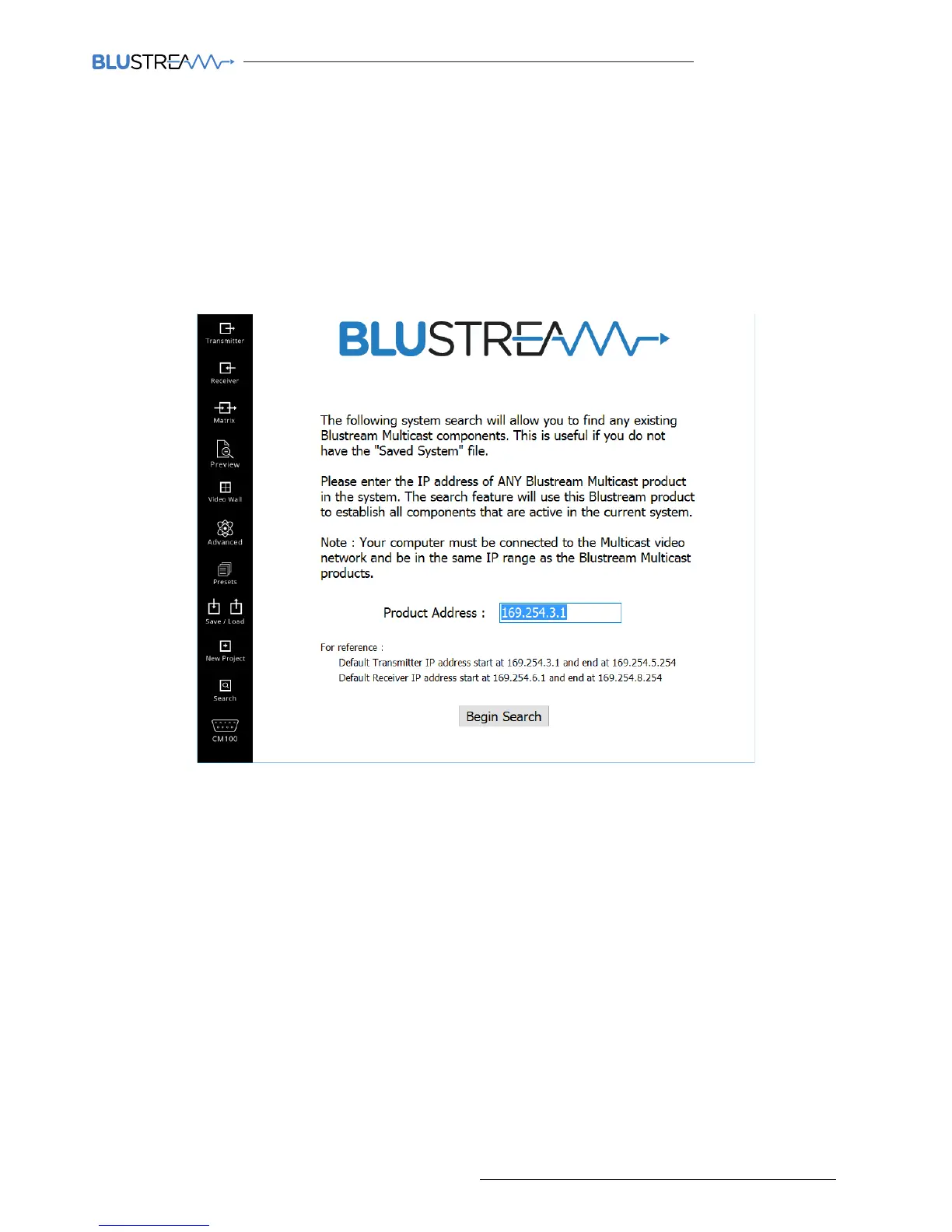 Enter the Multicast product IP address and click ‘BEGIN SEARCH’. The system will report back all Multicast products