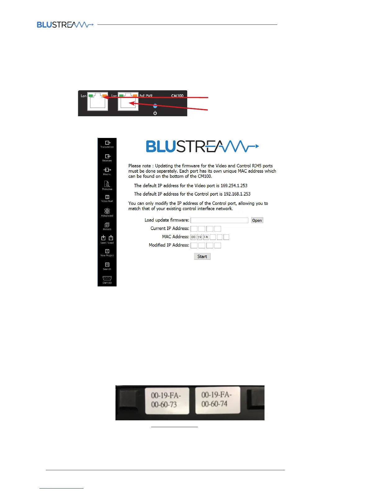 Note: The CONTROL port MAC Address is shown on the le side of the rear of the CM100.