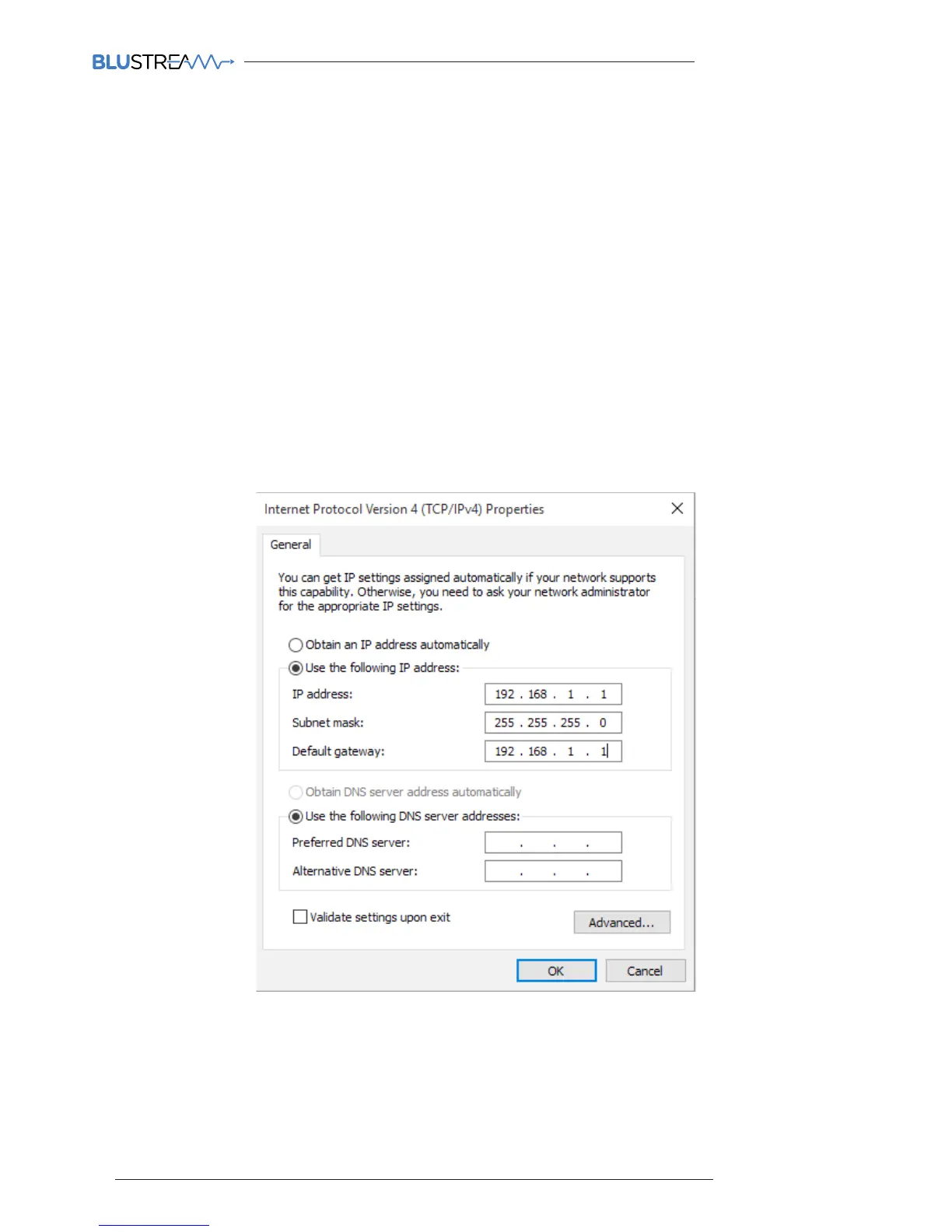 C. Enter the following FIXED IP network details for Blustream Multicast products