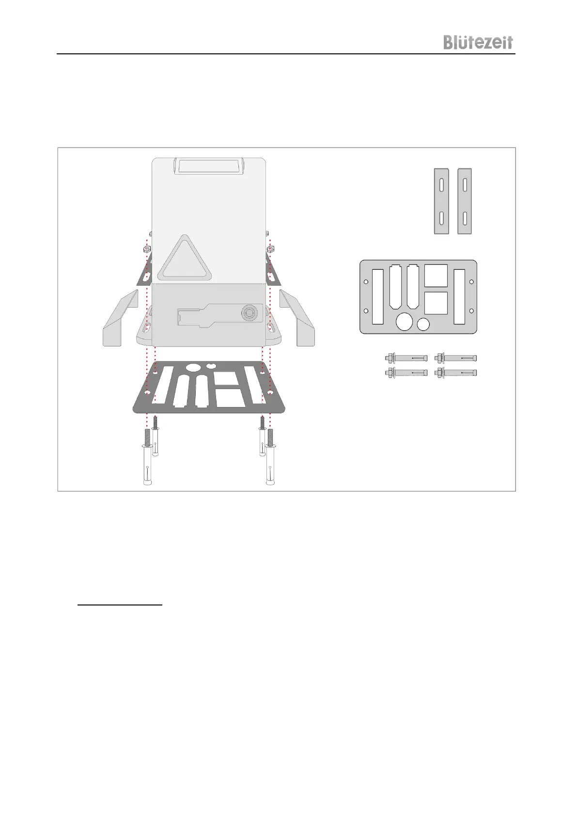 b. Use a marker pen to mark the positions for the 4 holes. Remove the nuts from the bolts and