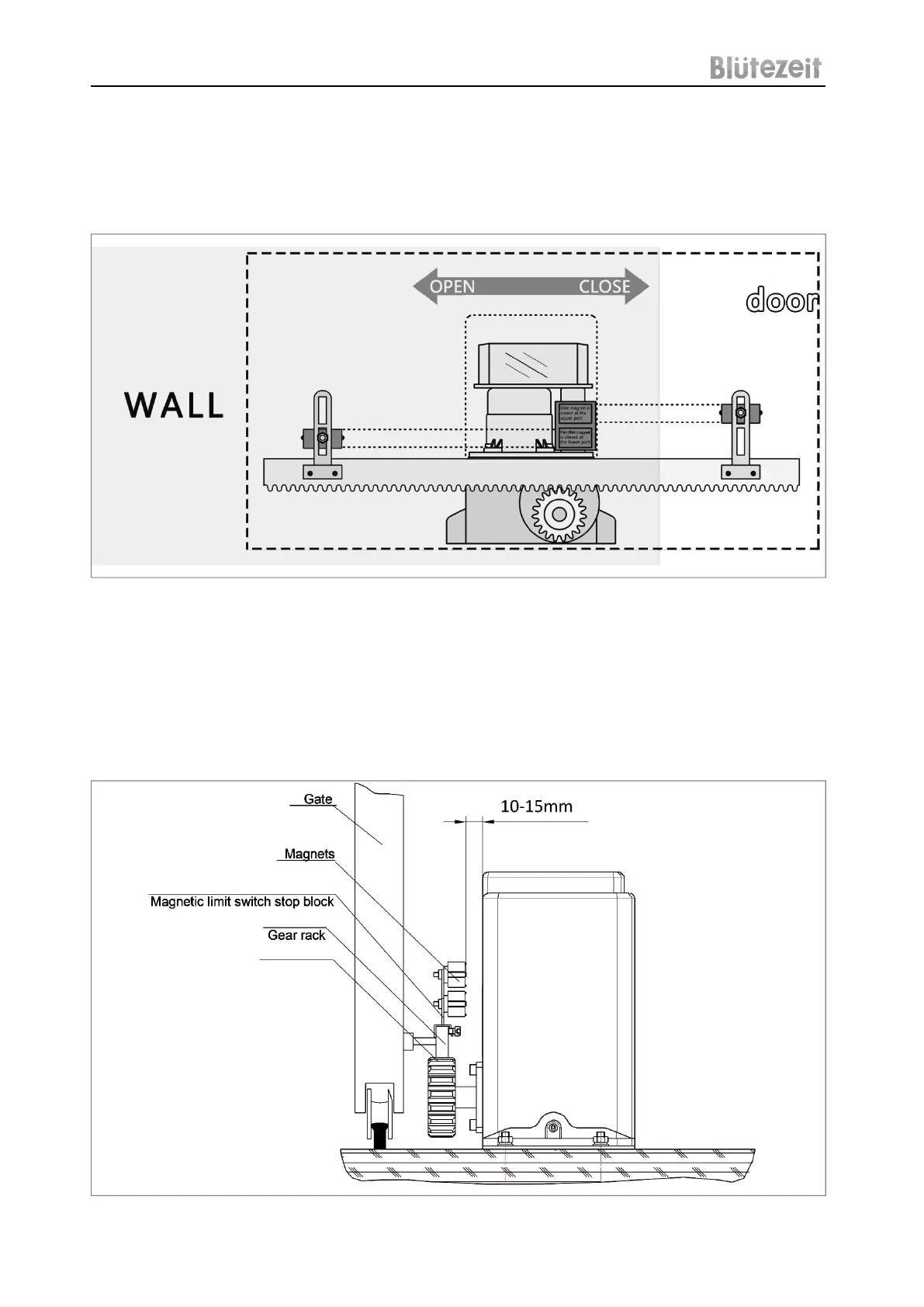 Note: The magnets' position is crucial for proper gate operation. The gate's single stroke