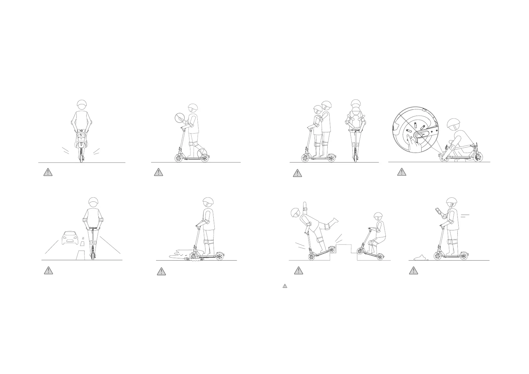 Always keep both hands on the handlebar, or you risk serious injury due to loss of balance and falls.