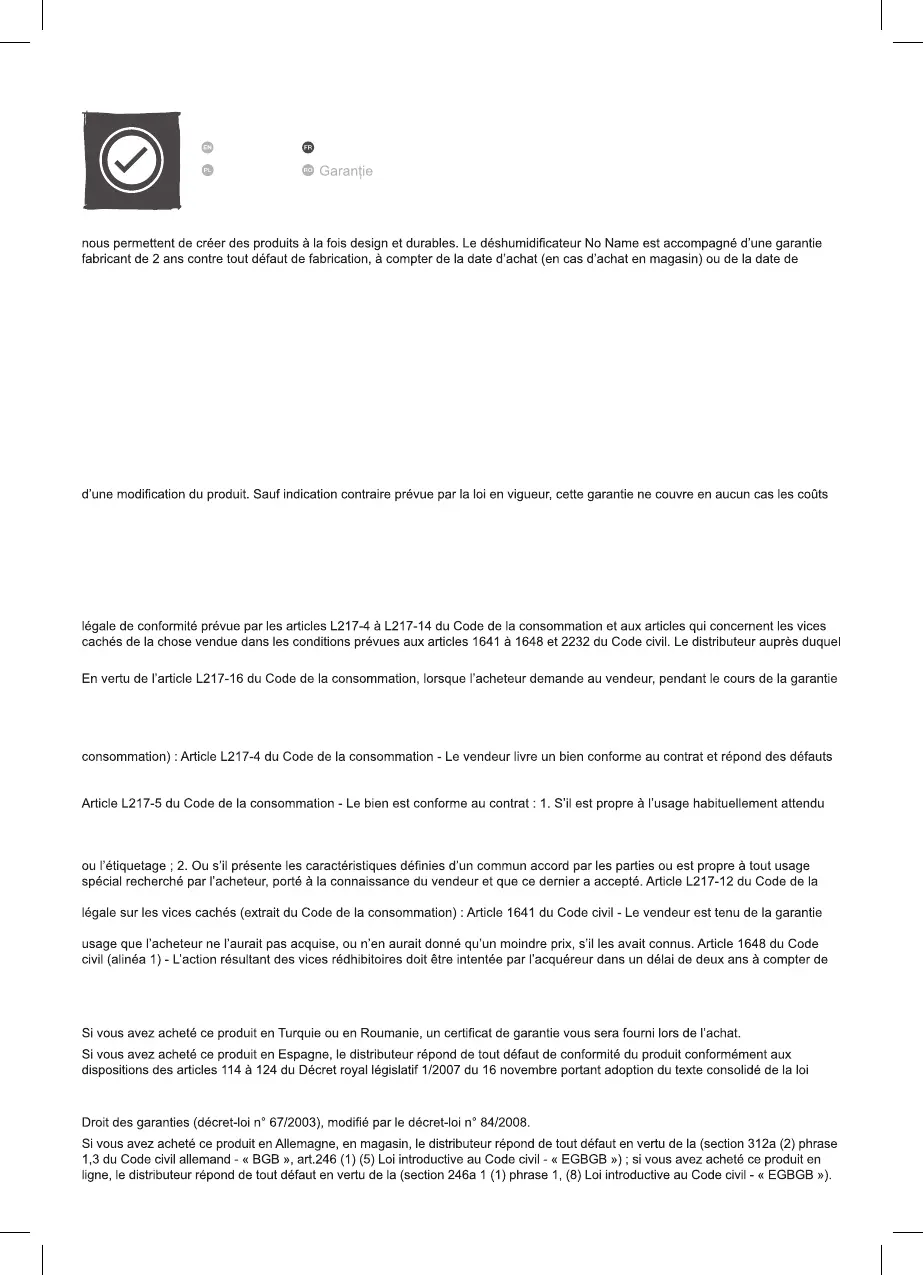 vous avez acheté ce produit répond de tout défaut de conformité ou vice caché du produit, conformément aux présentes dispositions.