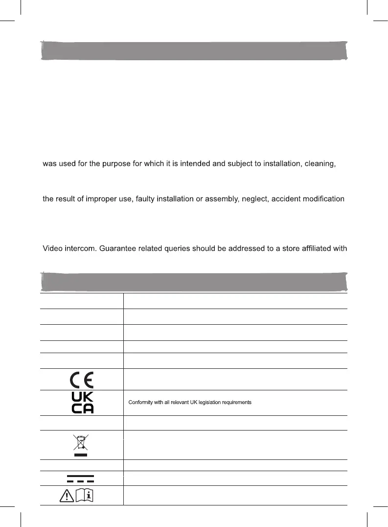 The guarantee covers product failures and malfunctions provided the Video intercom
