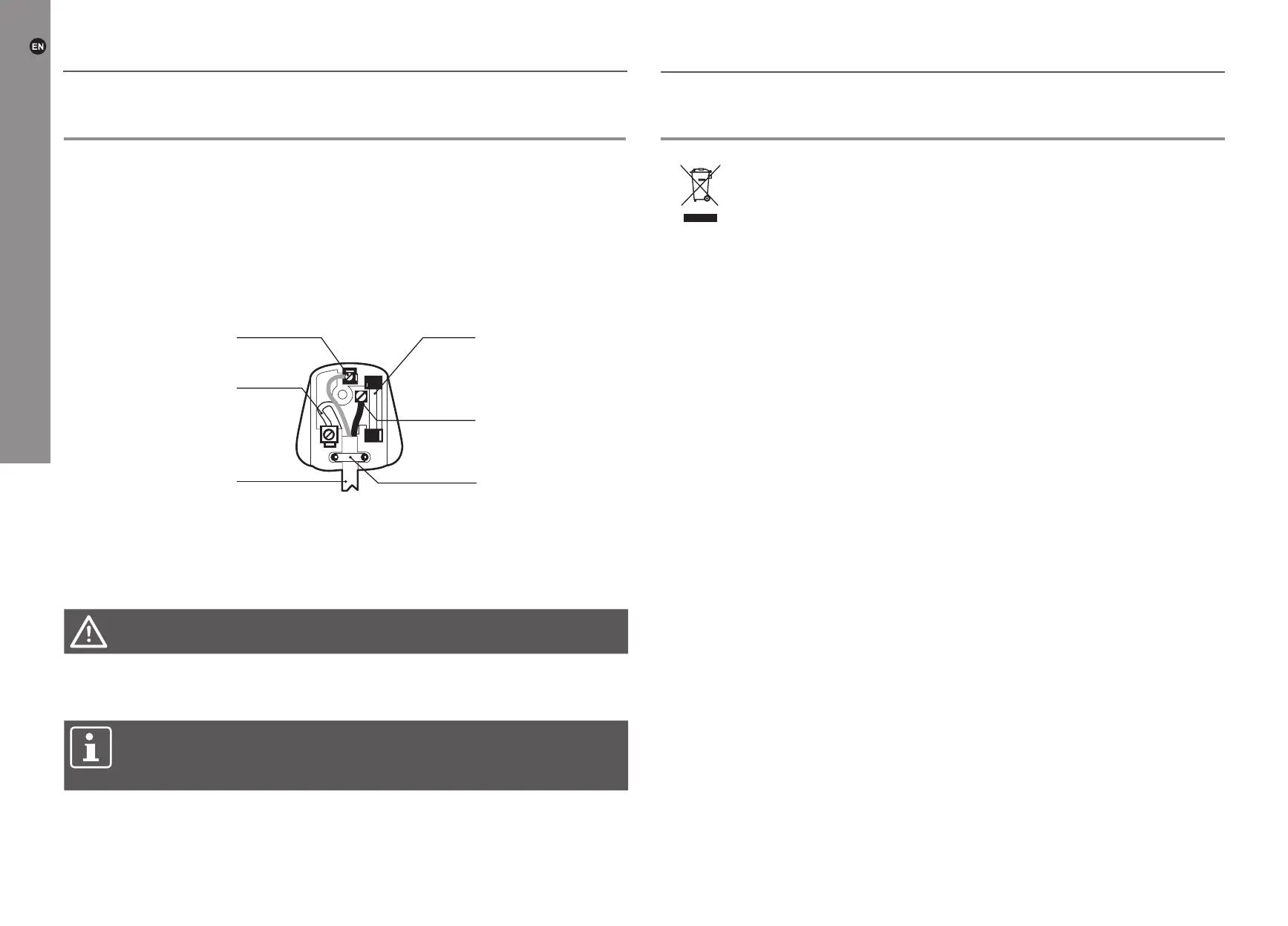 WARNING! Never connect live or neutral wires to the earth terminal of the plug.