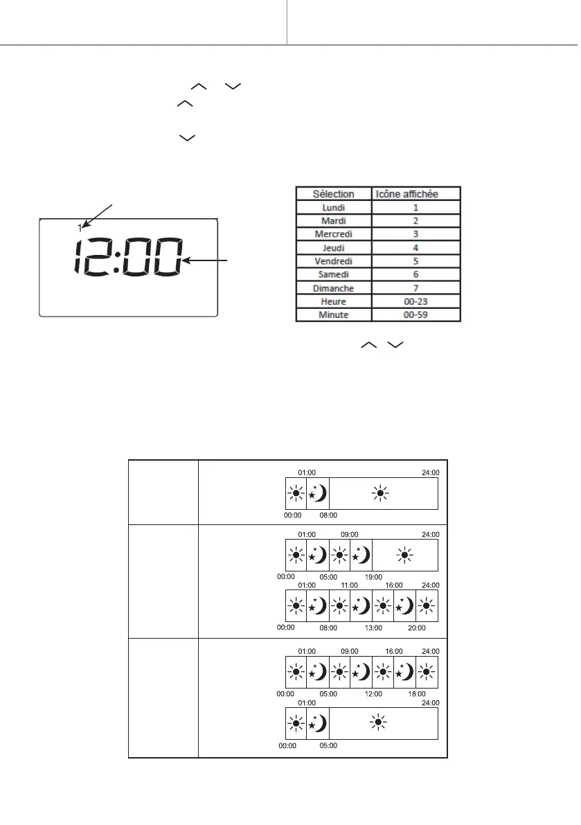 3. Appuyez sur la touche pour régler heure/minute/semaine.
