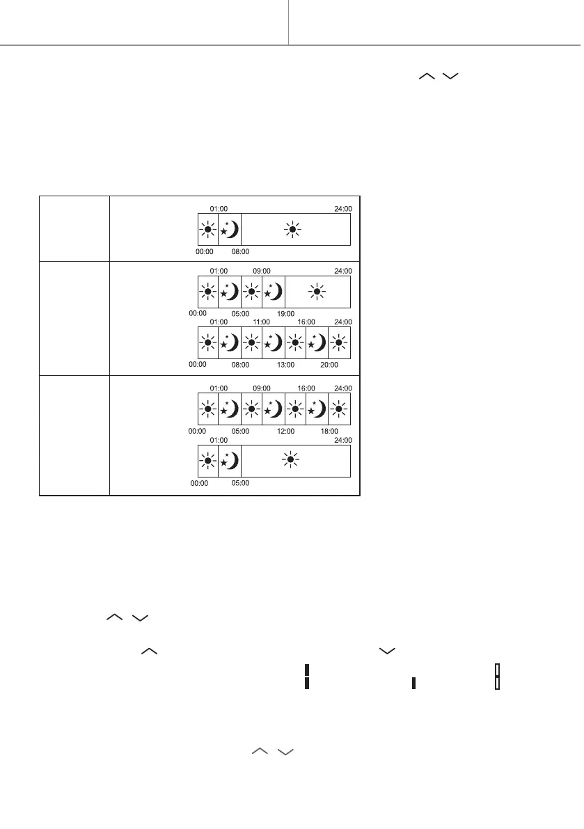 Podczas ustawiania opcji „tryb grzania w różnych okresach (00:00-24:00)”, należy