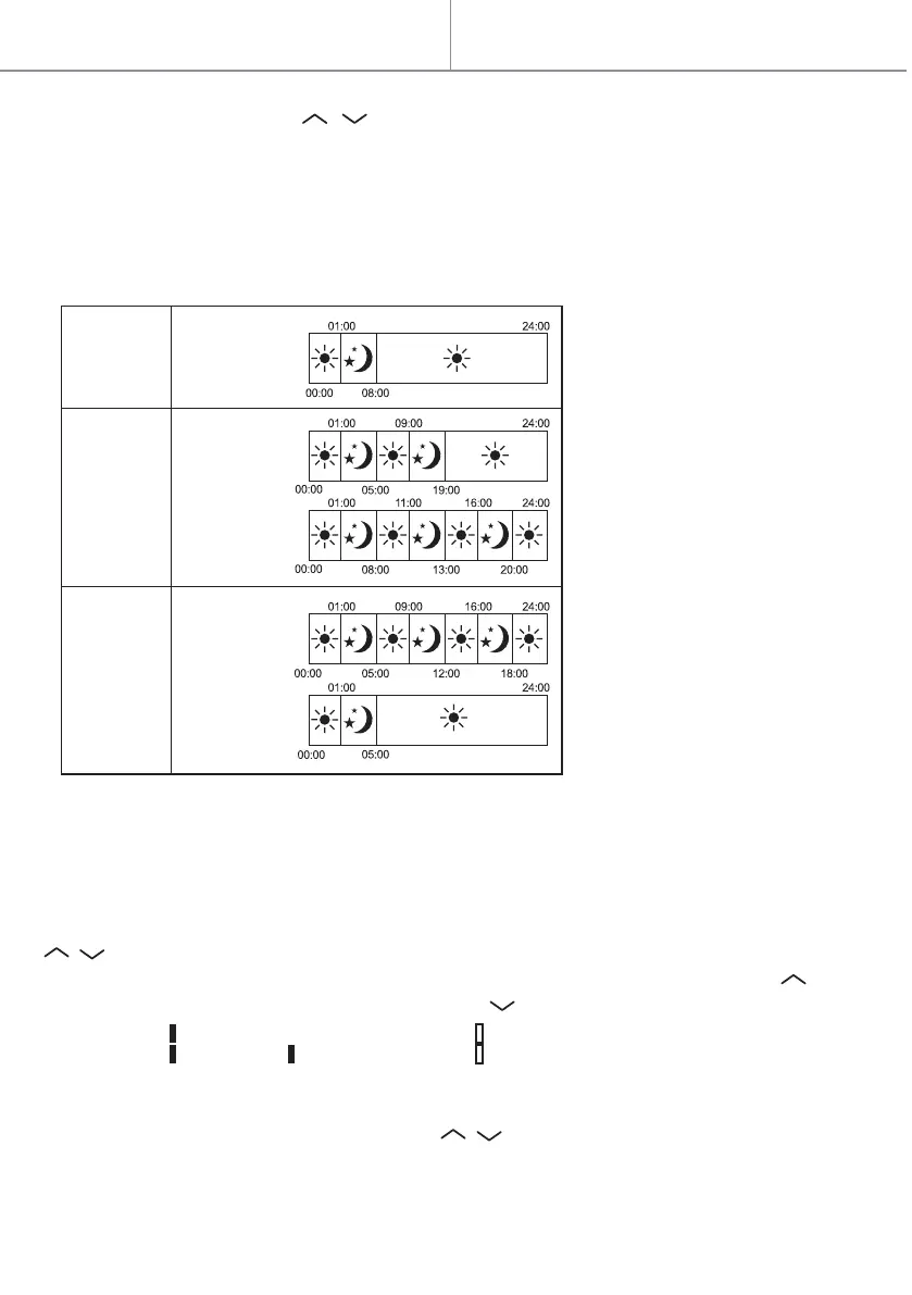 / düğmelerine basarak istenen günü (1-7) veya ısıtma modunu seçin.
