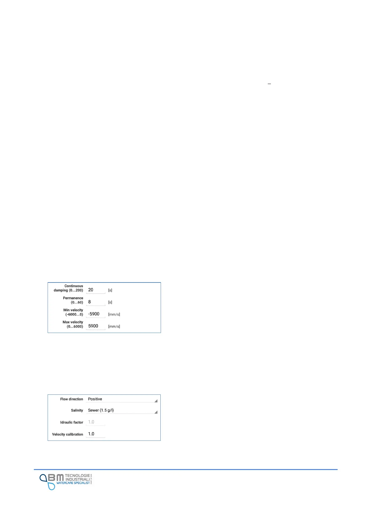 Min velocity: Minimum velocity in mm/s read by the sensor.