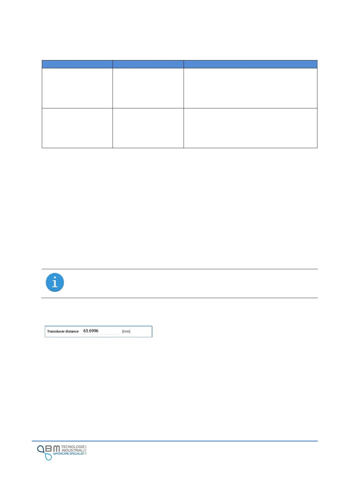 Transducer distance: it is the value of the mounting