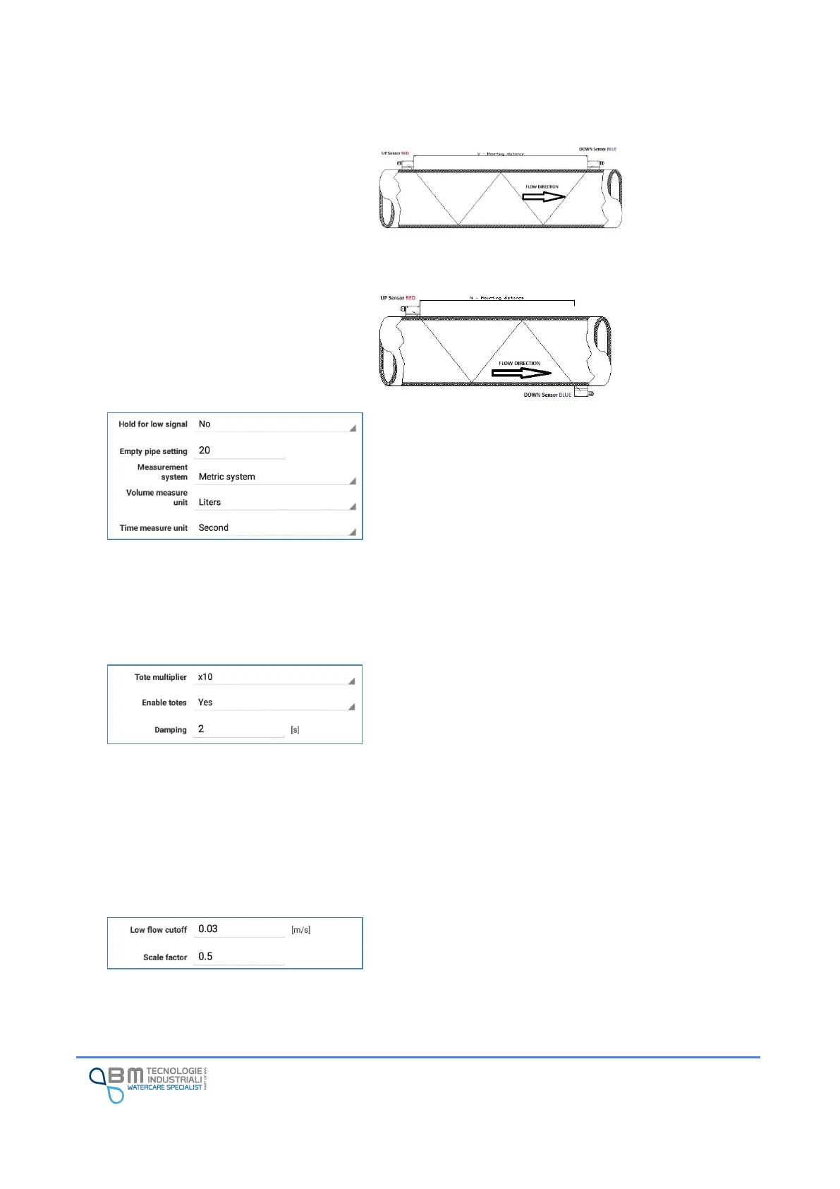 Low flow cutoff: it indicates the speed threshold, in m/s,