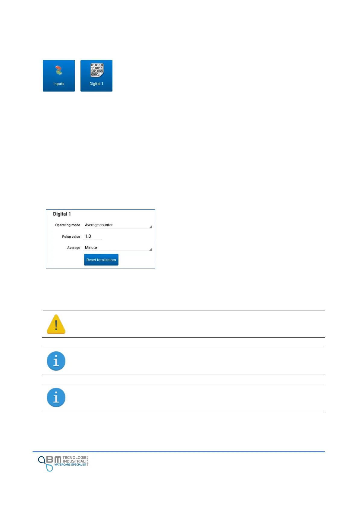 Reset totalizators: it is possible to reset the totalizators and