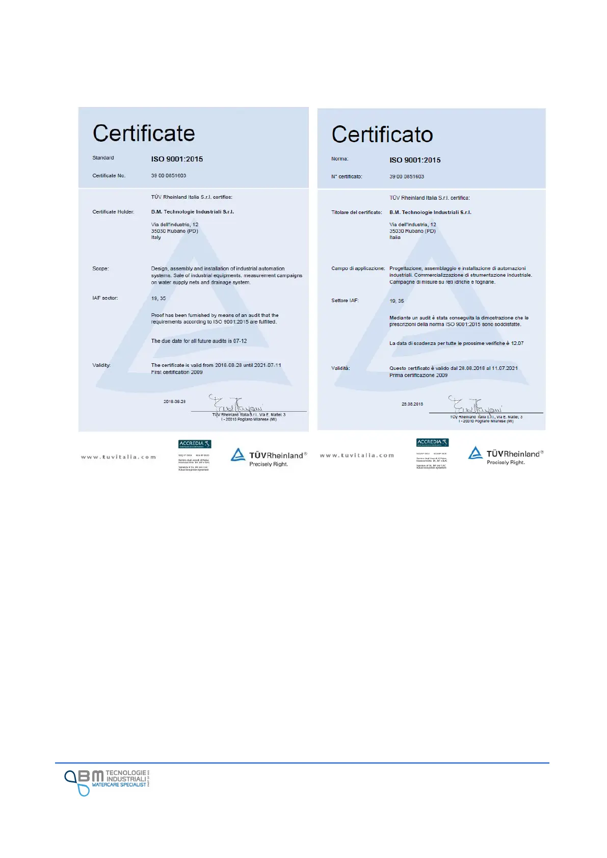 BM BJONG - Conformity Certificates of Manufacturer