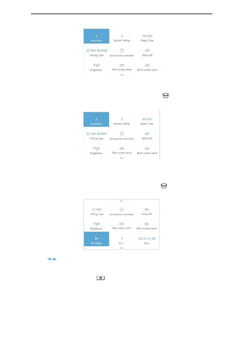 options will appear on a new page if you continue to turn the Knob clockwise, as shown in