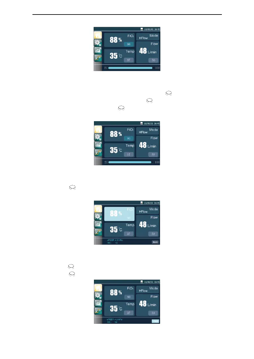 ‖ option is selected. As you turn the Knob clockwise, the value of the FiO