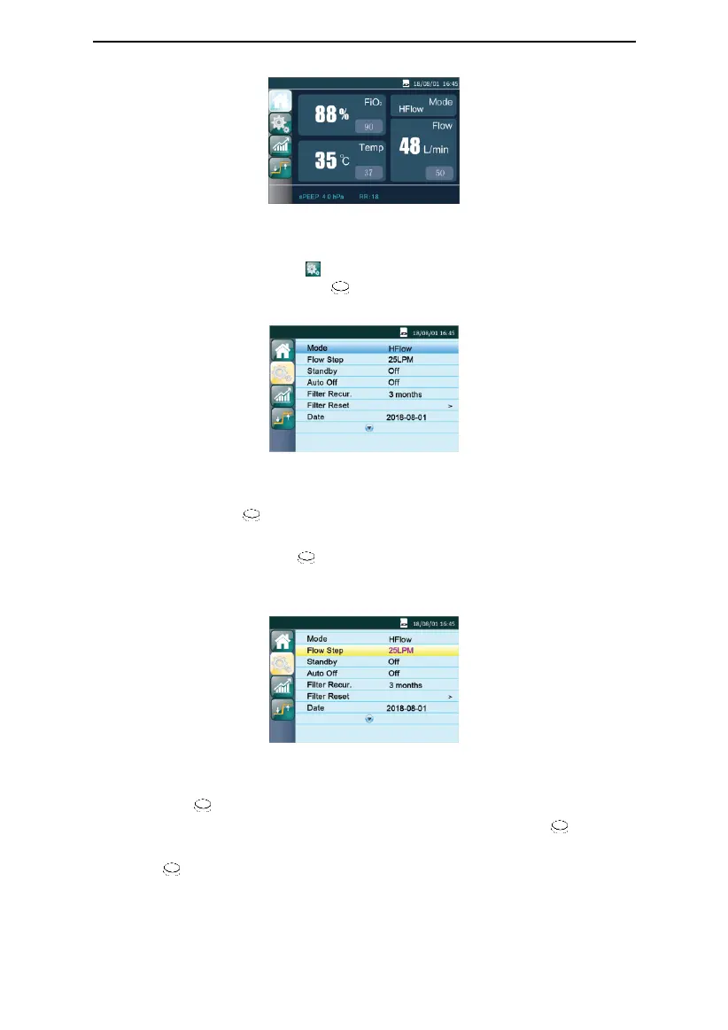 Turn the Knob to change the working parameter. The option ―Flow Step‖ is selected