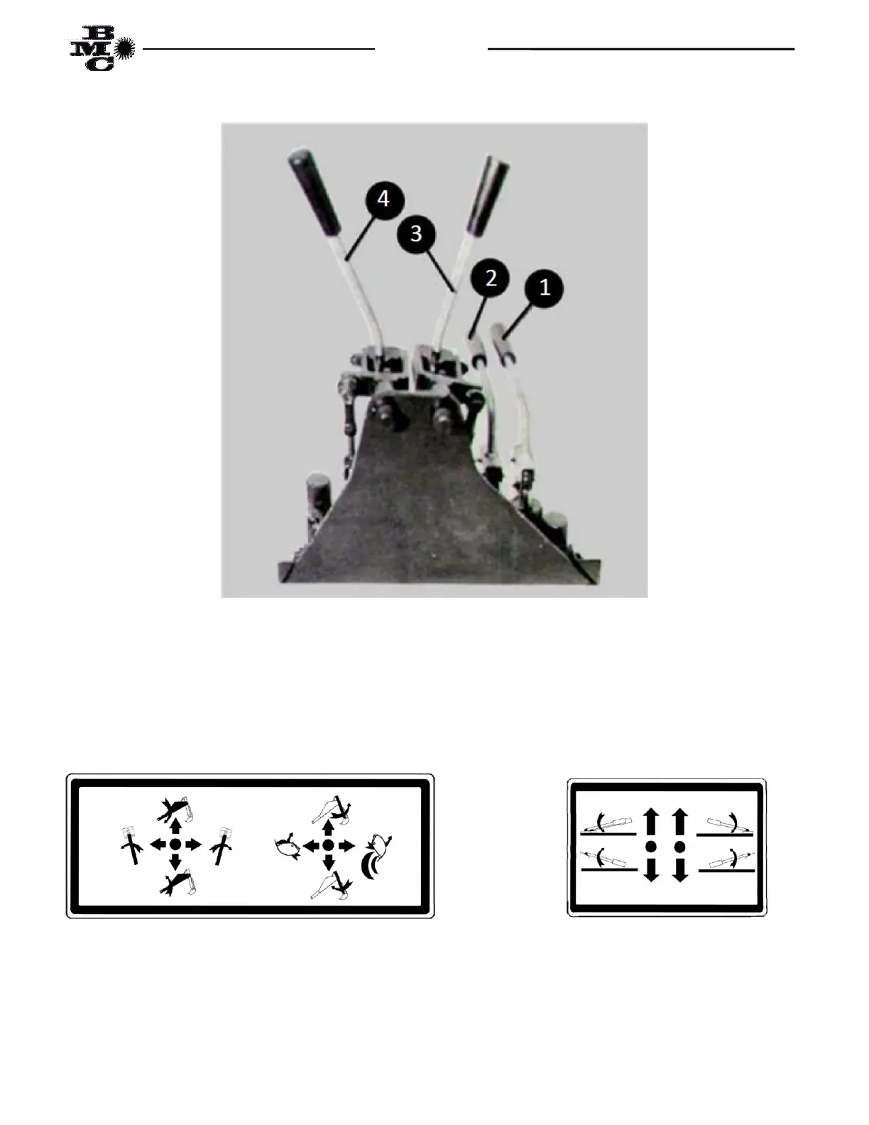 The BMC LD6 and MD8 Series Backhoe are operated by two lever controls as shown in Fig. 1.