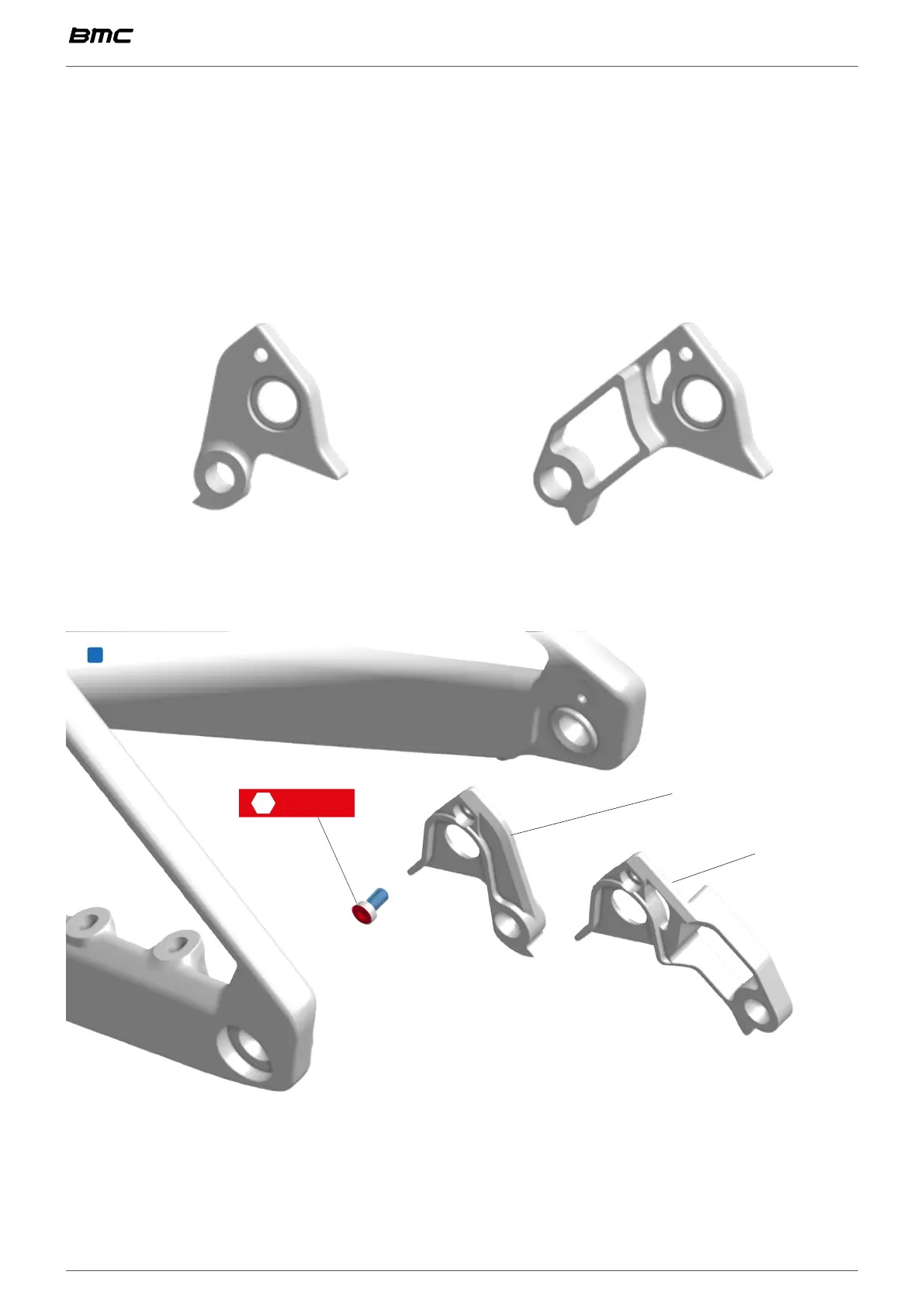 • Position the selected dropout hanger on the frame dropout and bolt on the M4x8 bolt using a hex