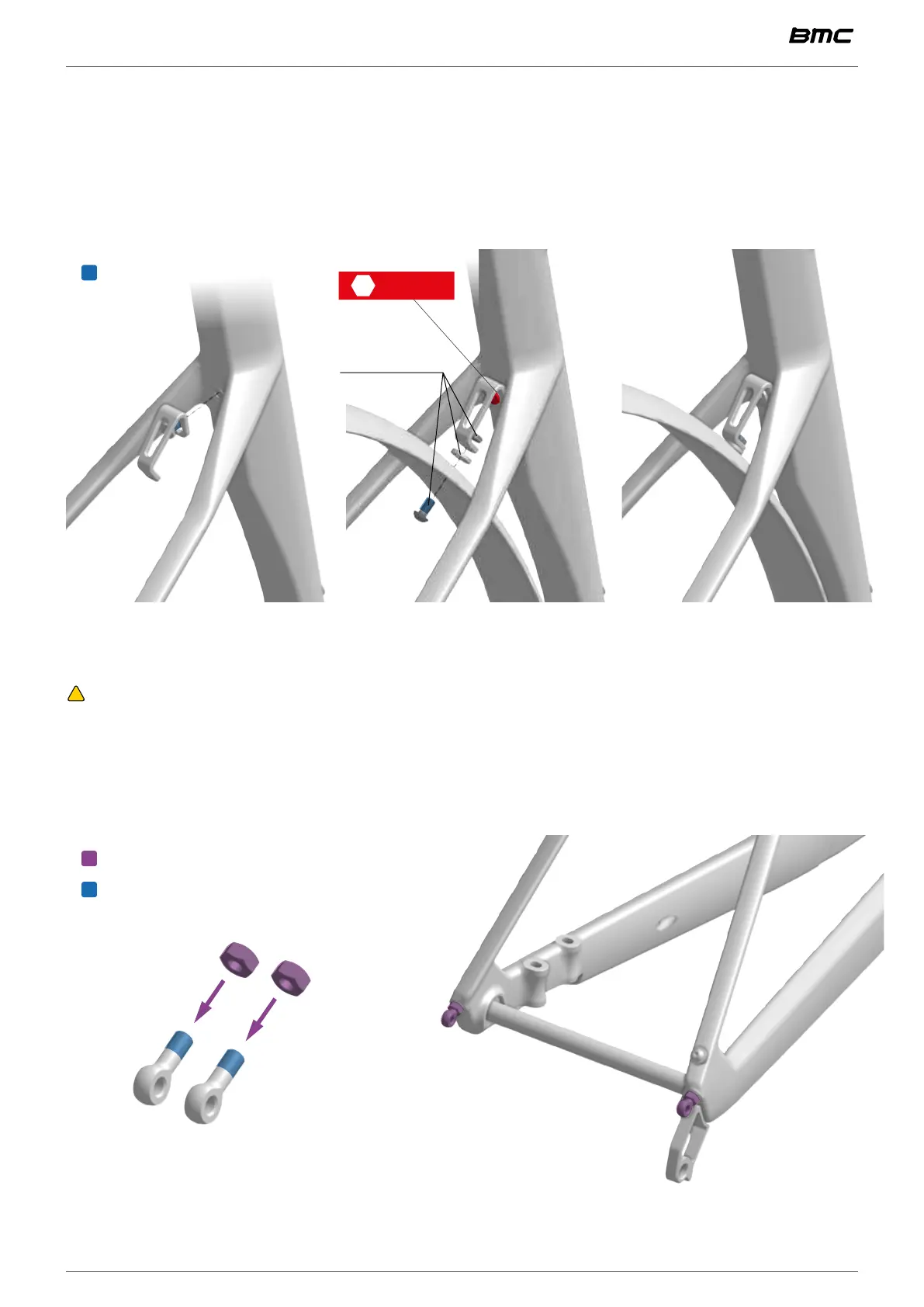 • Install the rear fender spacer at the back of the seat tube between the seatstays with the M5x8