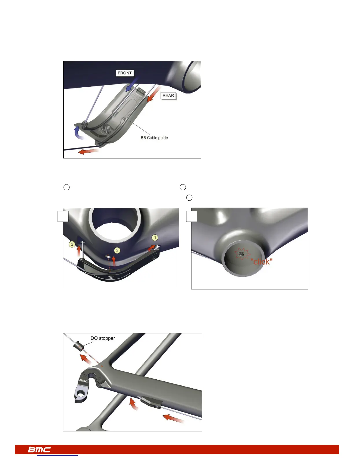 3. Faire glisser les câbles à travers le guide de boîtier de pédalier (BB cable guide), en faisant attention à bien respecter les rainures