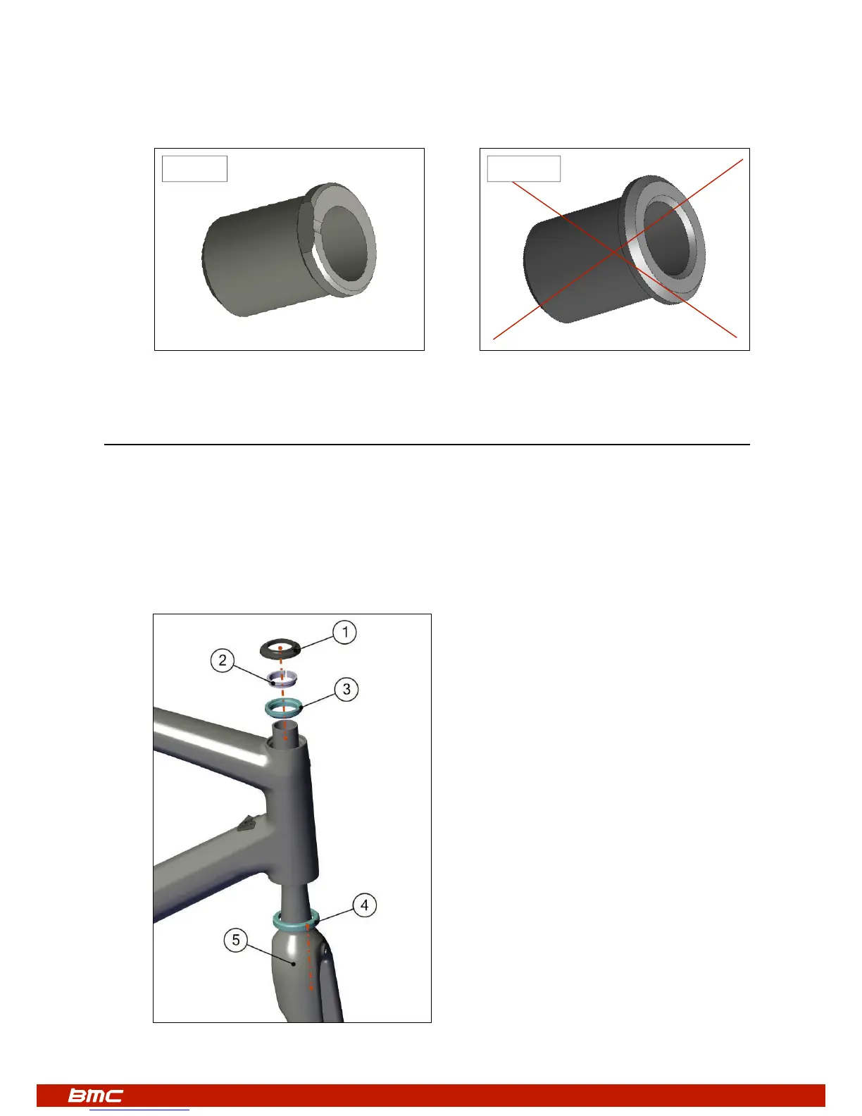 Note : la tête de la fourche est prévue pour recevoir directement le roulement de direction. Aucune pièce supplémentaire