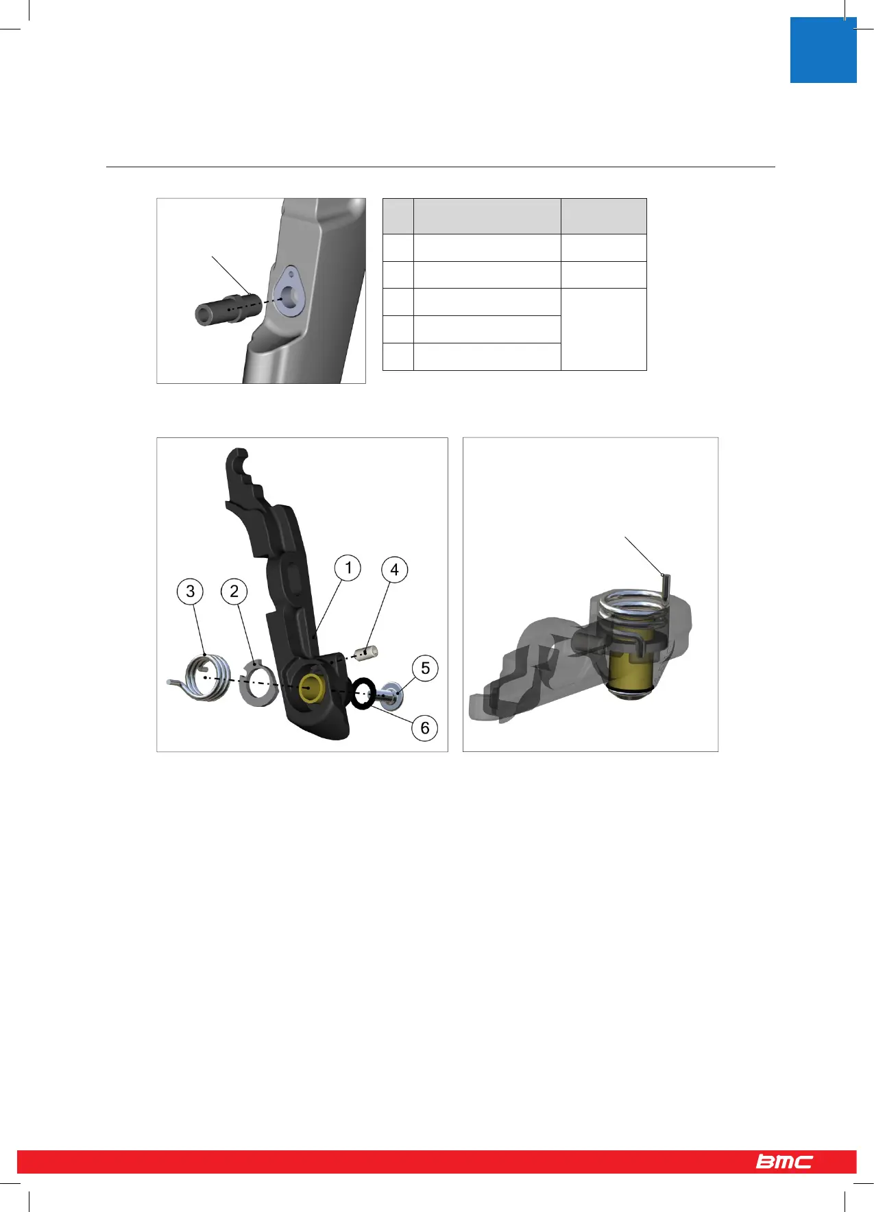 3. Appliquer de la graisse sur le ressort (N°3) et le placer dans l’étrier de frein. Le ressort argenté se place dans l’étrier côté droit.