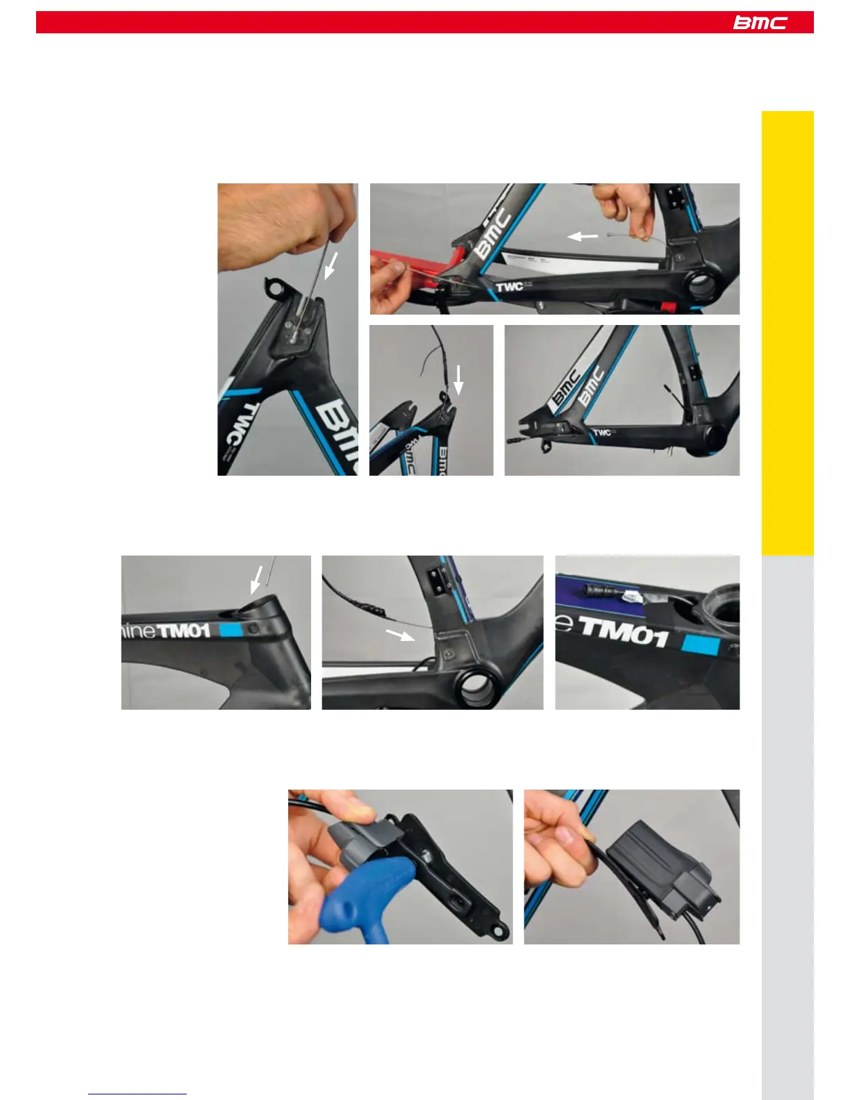 - Use a shifting cable as guide (5) to insert the wire from the junction to the handlebars. Enter over the BB towards the head tube (6).
