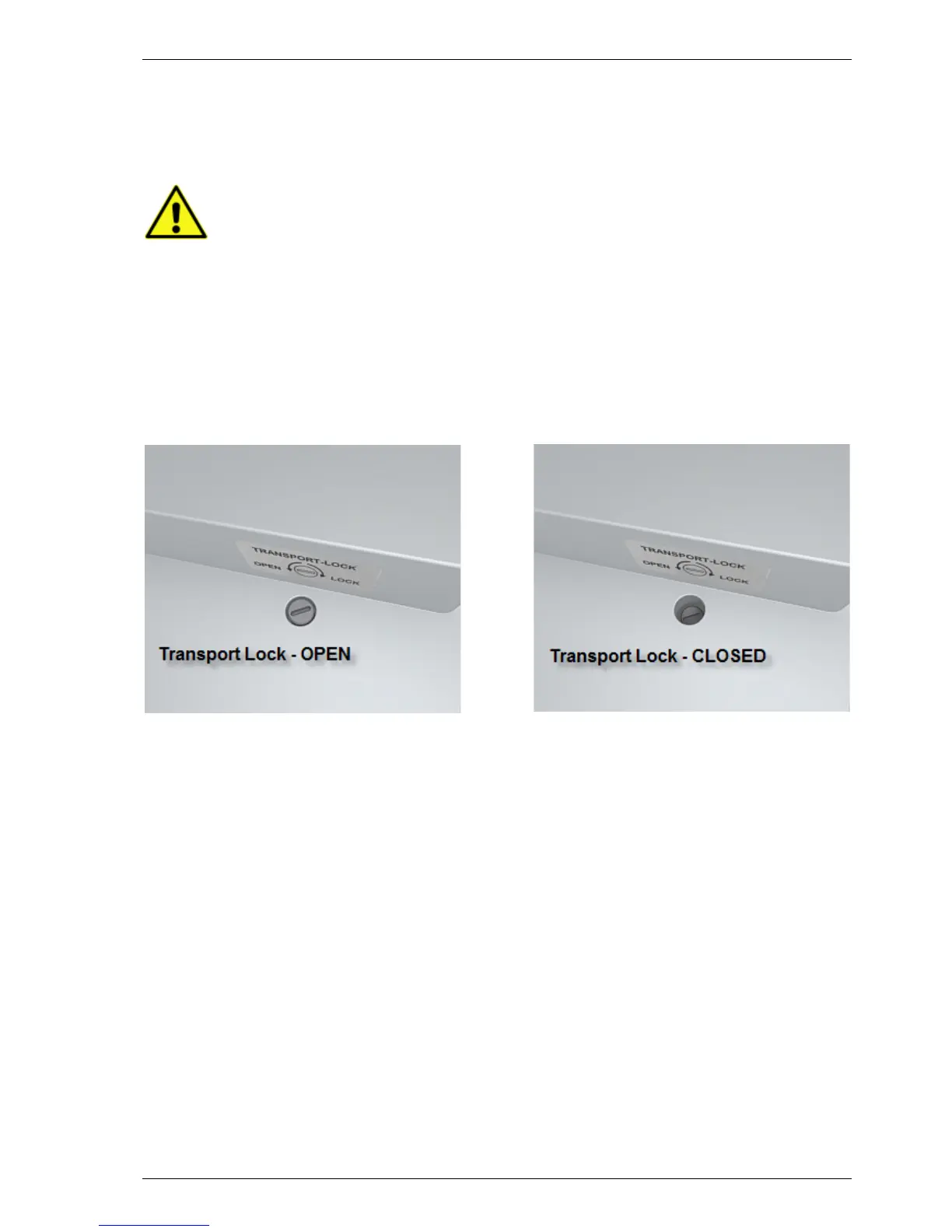 the silver screw located next to the label “Transport Lock” (figure 5). Use the supplied 5,5 mm slotted