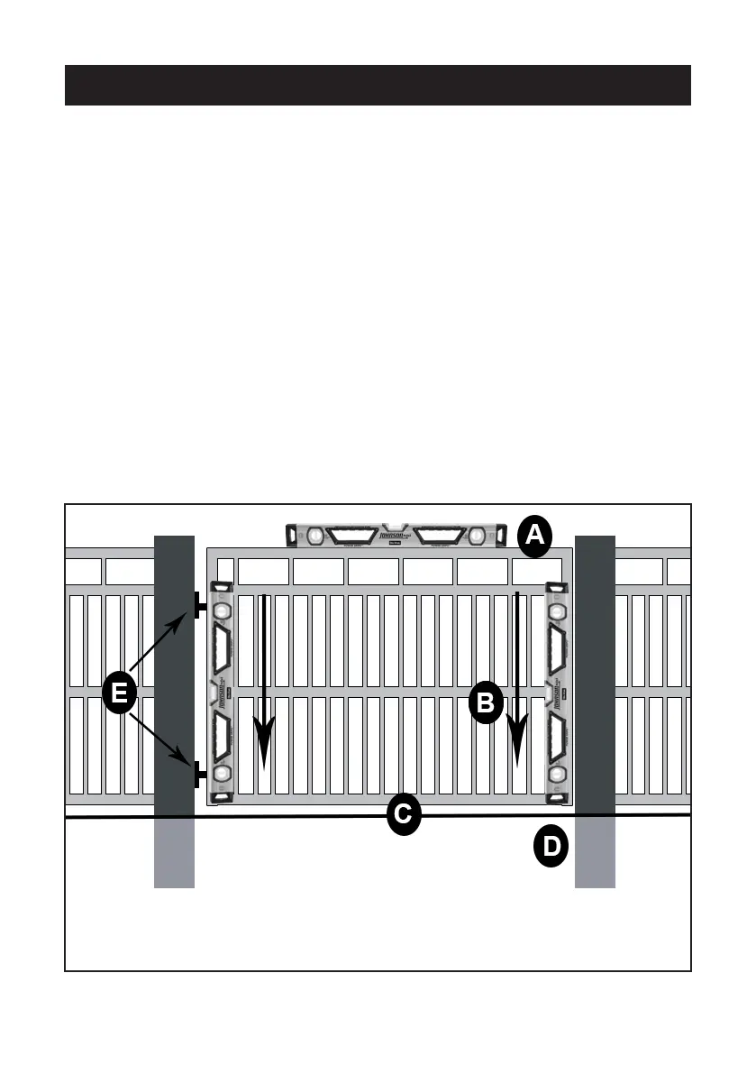 • The gate must move throughout its arc without binding or dragging on the ground.
