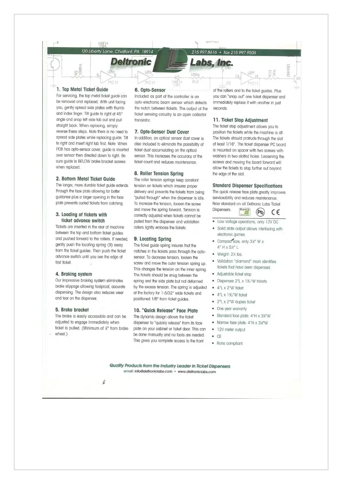 BMI Gaming SideShow 1889 - Top Metal Ticket Guide; Bottom Metal Ticket Guide; Loading Tickets; Braking System
