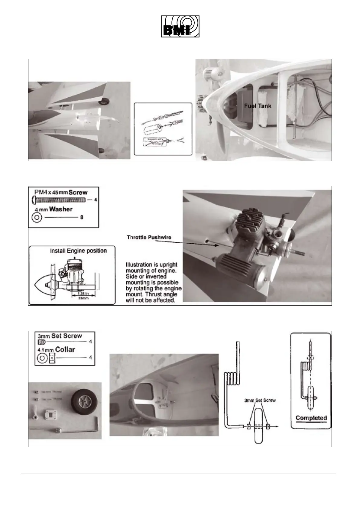 BMI Bobcat - Assembly: Fuel Tank, Front Wheel; Fuel Tank Installation; Engine Connection and Mounting