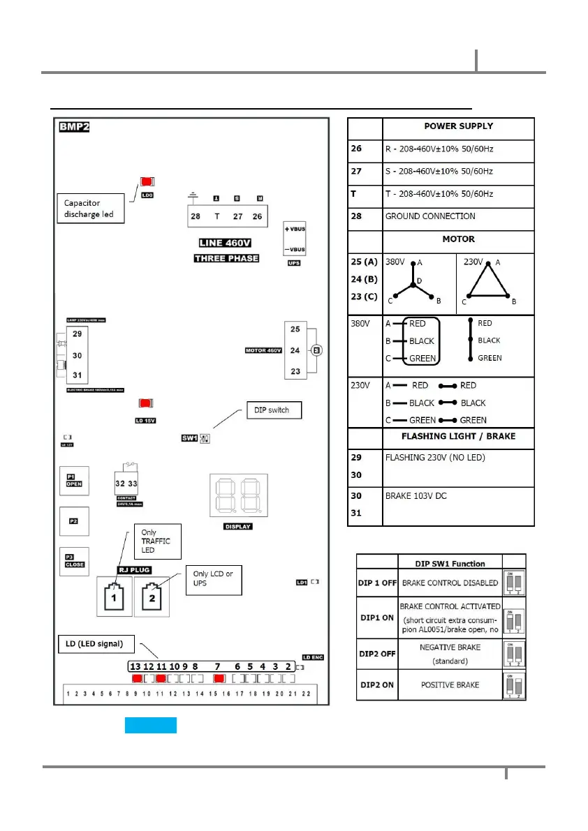 Electrical power connection - Dip Switch SW1 function and LED meaning BMP2_V04/05/06