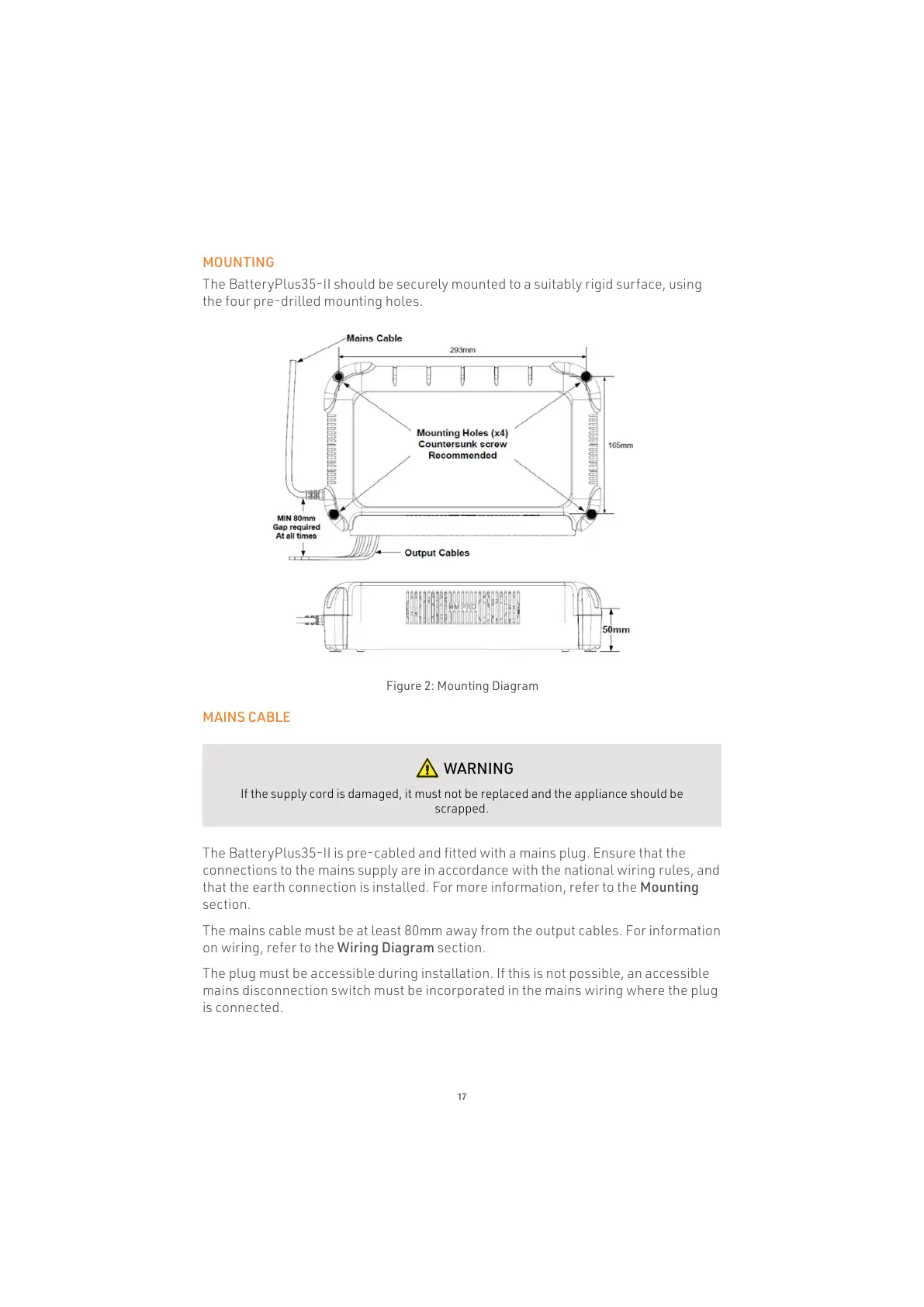 The BatteryPlus35-II is pre-cabled and fitted with a mains plug. Ensure that the